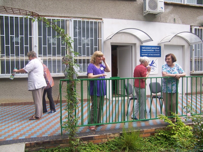 Po obědě relaxujeme při kávě, čaji či oblíbeném nealku konverzací, četbou apod. V letních měsících s oblibou využíváme naší terasy a možnosti posedět v areálu zahrady, kterou je budova DS obklopena. Květiny, které pěstujeme a ošetřujeme voní a jsou odměnou za naši péči. Zahrada nám chystá překvapení, je domovem veverek, rozmanitého ptactva a sezónně skýtá rozličná potěšení a to: pro houbaře úlovek vhodný pro smaženici, pro ochránce zvěře krmítko, které je doceněno jeho obyvateli zejména v zimě.