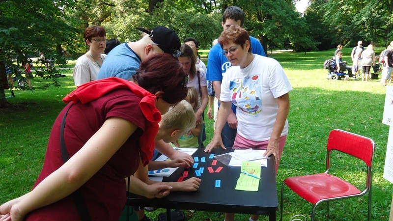 Dne 7.9.2014 pořádalo Dobré místo pro život netradiční odpoledne.  V parku u kavárny Fontána ve Smetanových sadech se přišly pobavit rodiny s dětmi. Soutěžily v různých disciplínách. Pamatováček tvořil jednu z nich,  trénovali jsme paměť.