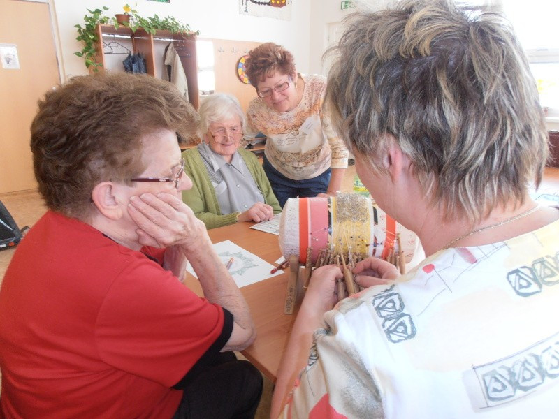 21.5.2013 proběhla v denním stacionáři ukázka paličkování. Zájem o tuto ruční práci projevilo dámské osazenstvo. Dozvěděli jsme se, že válec se jmenuje herdule, paličky jsou pláštíkové, ale je i typ zvaný "naháčci", krajka, která je právě tvořena není z nejjednodušších a jmenuje se vláčková. Počet paliček na herduli je asi 70, špendlíčky svojí hustotou připomínají ježkův hřbet. Trpělivost, zručnost a píle je jistě zapotřebí, aby bylo dosaženo konečného výsledku. Obdivem jsme nešetřili. Přejeme této krásné ruční práci mnoho zájemců a šikovných tvůrců, aby umění paličkovat nebylo zapomenuto.