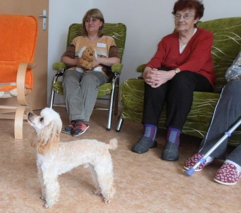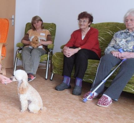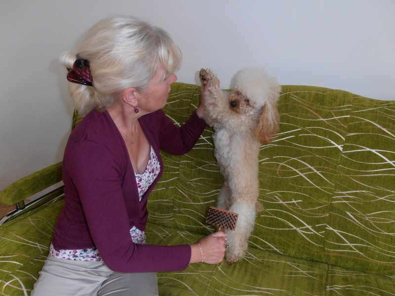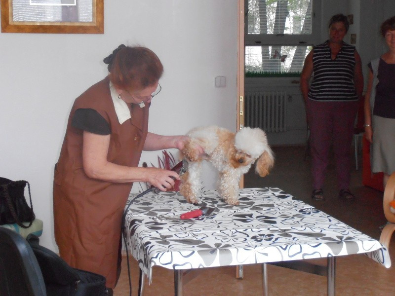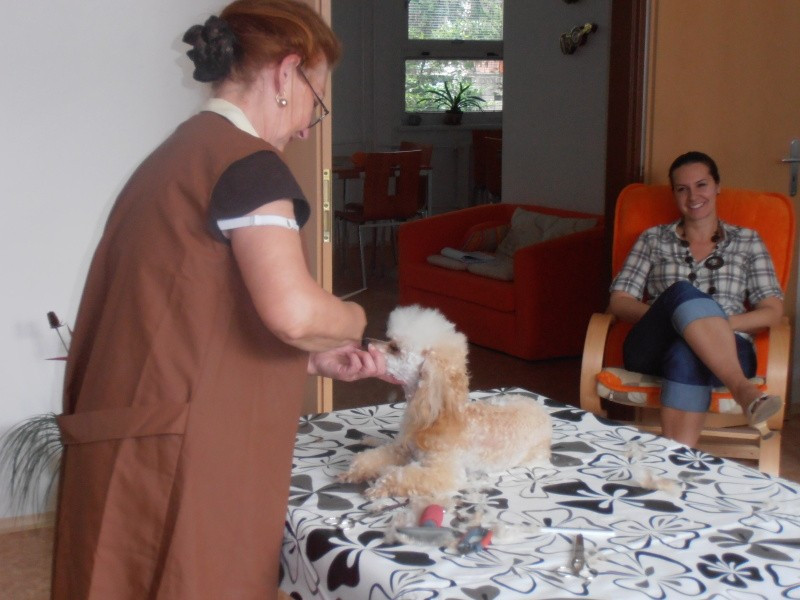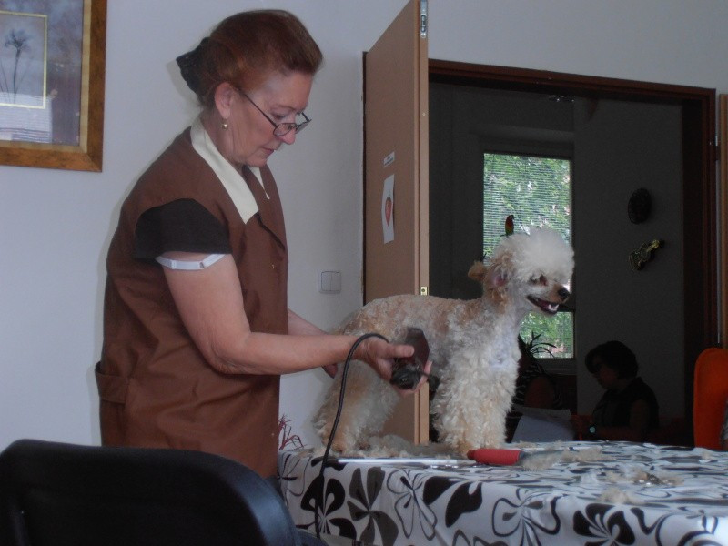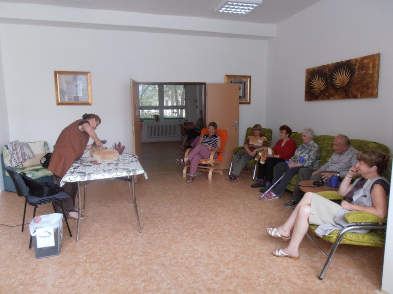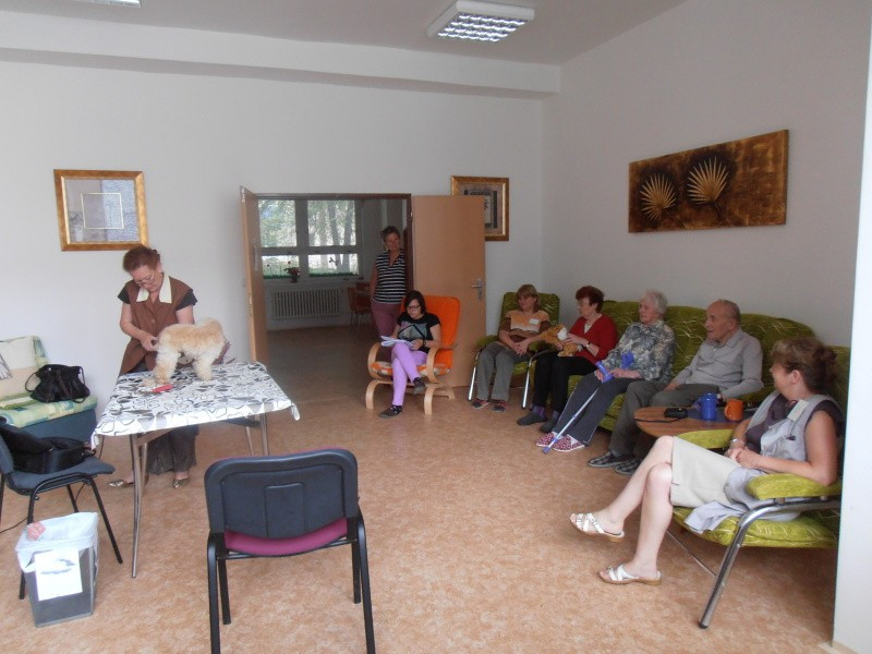 26.6.2012 jsme měli návštěvu z kadeřnického salónu. Nejednalo se o lazebnický úkon pro uživatele denního stacionáře, ale pozornost byla věnována čtyřnohému kamarádu Semiškovi. Protože je to pes, který nelíná, ale musí se stříhat, domluvili jsme se s paní Hladilovou, která je odborník v tomto oboru a požádali ji o předváděcí akci přímo v prostorách DS. Naši klienti tak měli možnost nevšedního zážitku. Pozorně sledovali proceduru jejímž výsledkem byl skutečně "semišový" Semišek.