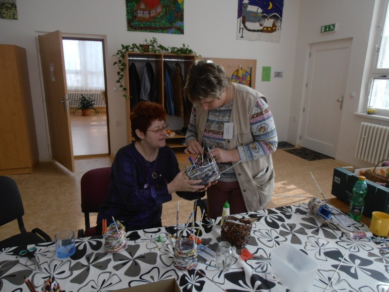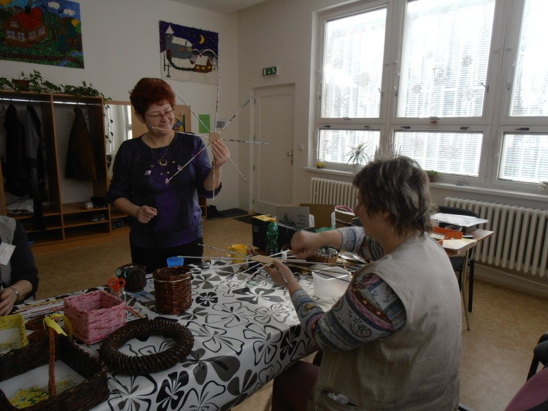 Rádi jsme mezi námi na počátku měsíce března přivítali zručnou paní Marcelu Moser, která nám předvedla pletení papírových košíků, ozdob a věnečků. Máme tak další osvěžení programu a díky vlastním výrobkům novou a neotřelou výzdobu interiéru.