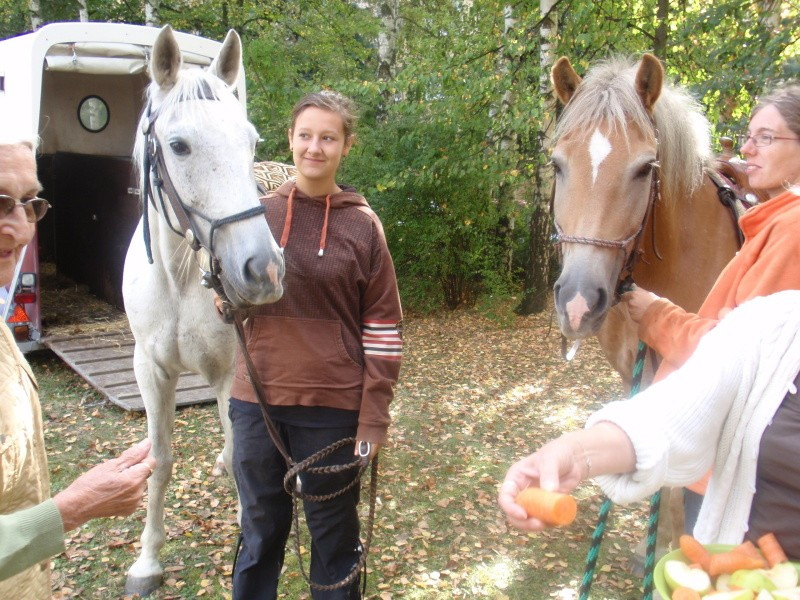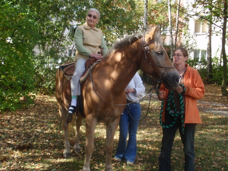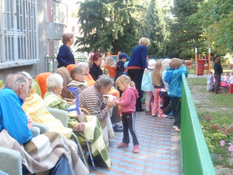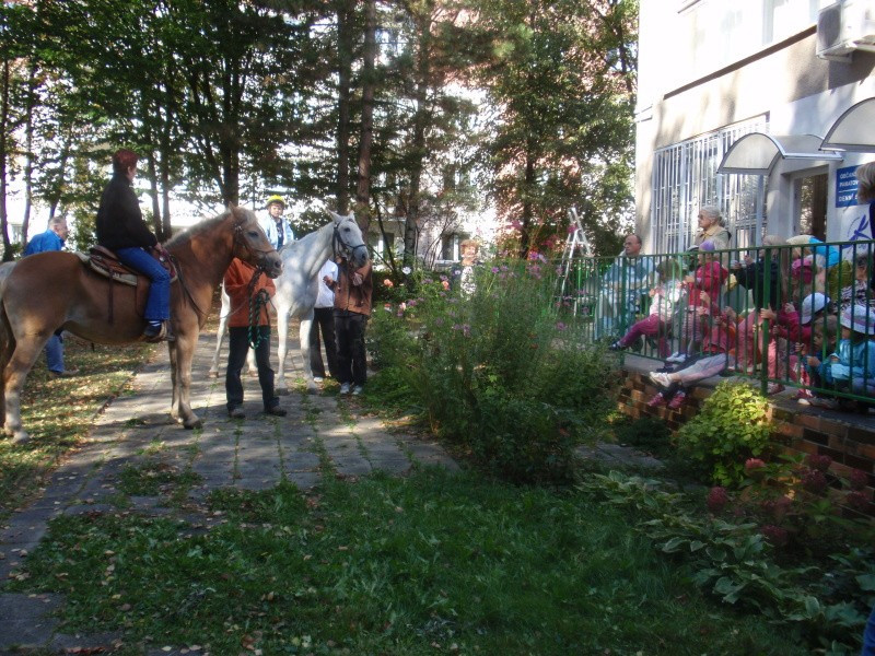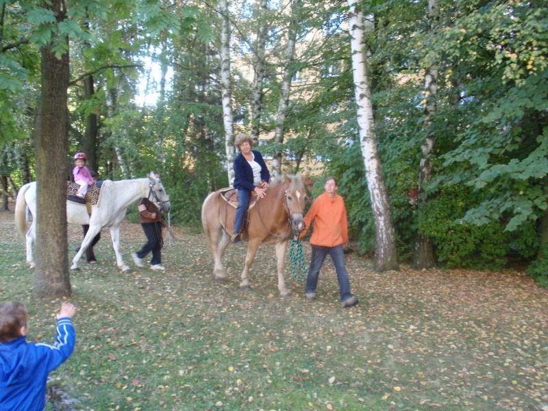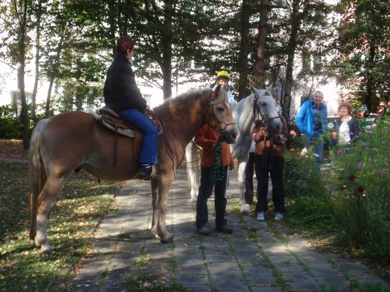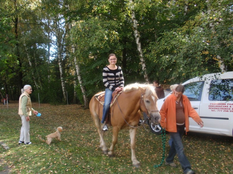 29.9.2011 jsme rozšířili nabídku mimořádných akcí o dopoledne s koněm. Naši klienti spolu s dětmi, které navštěvují sousedící budovu mateřské školky měli možnost svést se na koni, pohladit koně nebo jen pozorovat a to dle zájmu a naturelu každého jednotlivce. Našli se tací, kteří vzpomínali, že kůň byl členem stáda domácích zvířat, které rodiče na statku chovali. Devizou celého setkání byla i symbióza mezi generacemi. Smích a energie dětí, podívaná na jejich rejdění na konících spolu s počasím, které zahanbilo mnohé letní dny přispělo k dobré náladě a zdaru celé akce. Tak snad na jaře opět na shledanou.